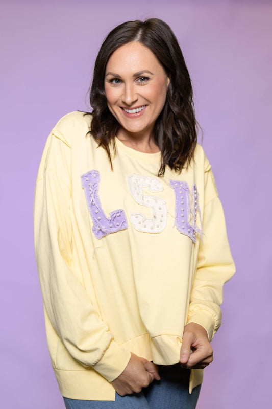 LSU (Licensed) | Women's Distressed Embroidery Pullover