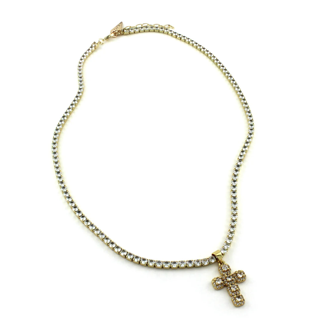 Indulge in luxury with our Bubbles Cross Necklace. Dazzling pave crystals adorn a delicate, elegant cross, adding a touch of glamour to any outfit. The perfect accessory for those who appreciate sophistication and exclusivity. Elevate your style with this stunning crystal necklace.