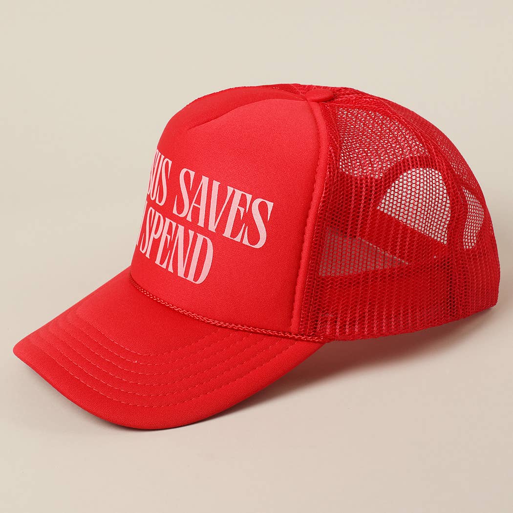 JESUS SAVES I SPEND Text Mesh Back Trucker Hat