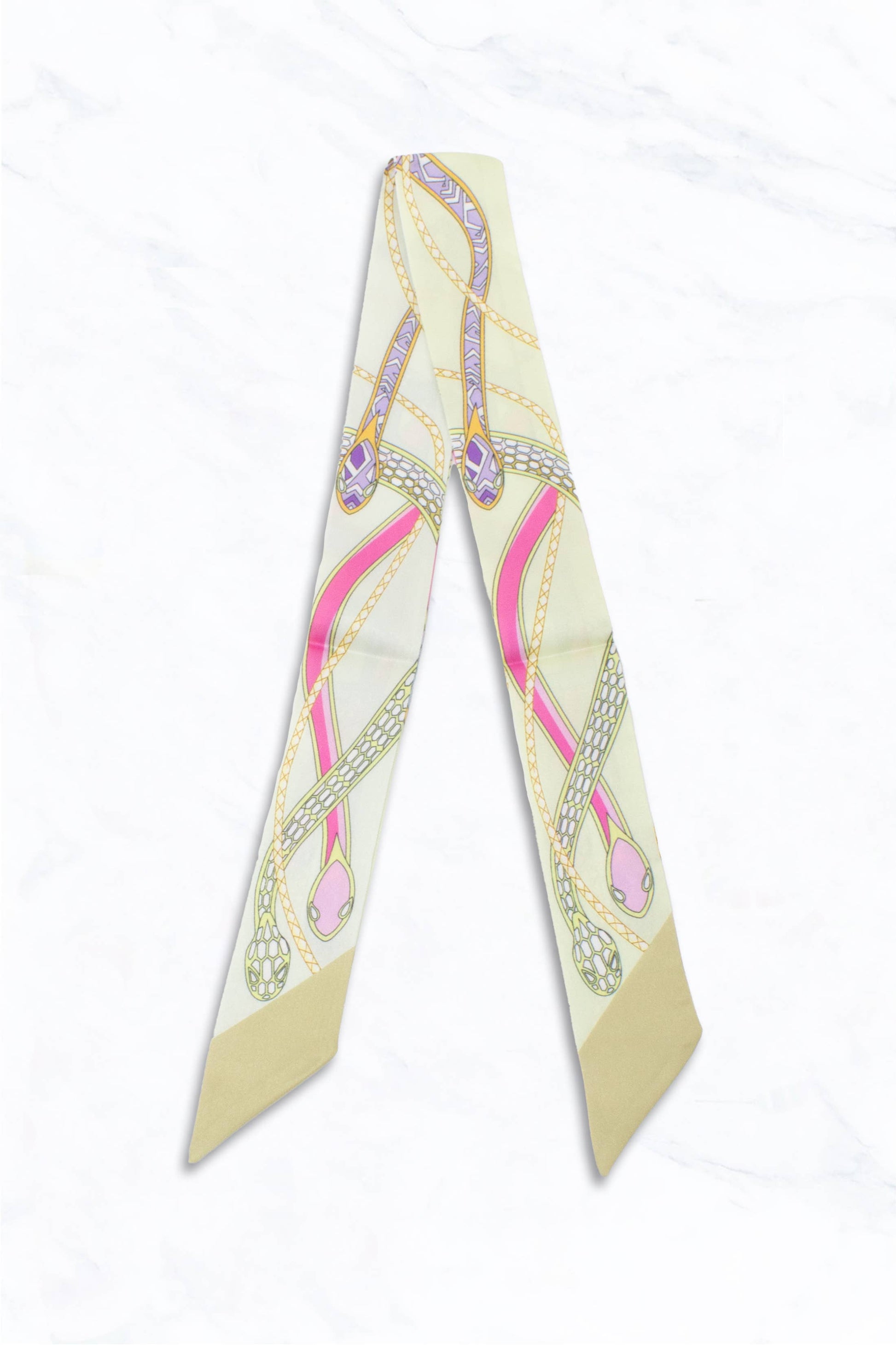 Elevate your look with this chic print scarf. Designed in soft, lightweight polyester, this versatile piece can be styled around your neck, tied on your handbag, or worn as a hair accessory.