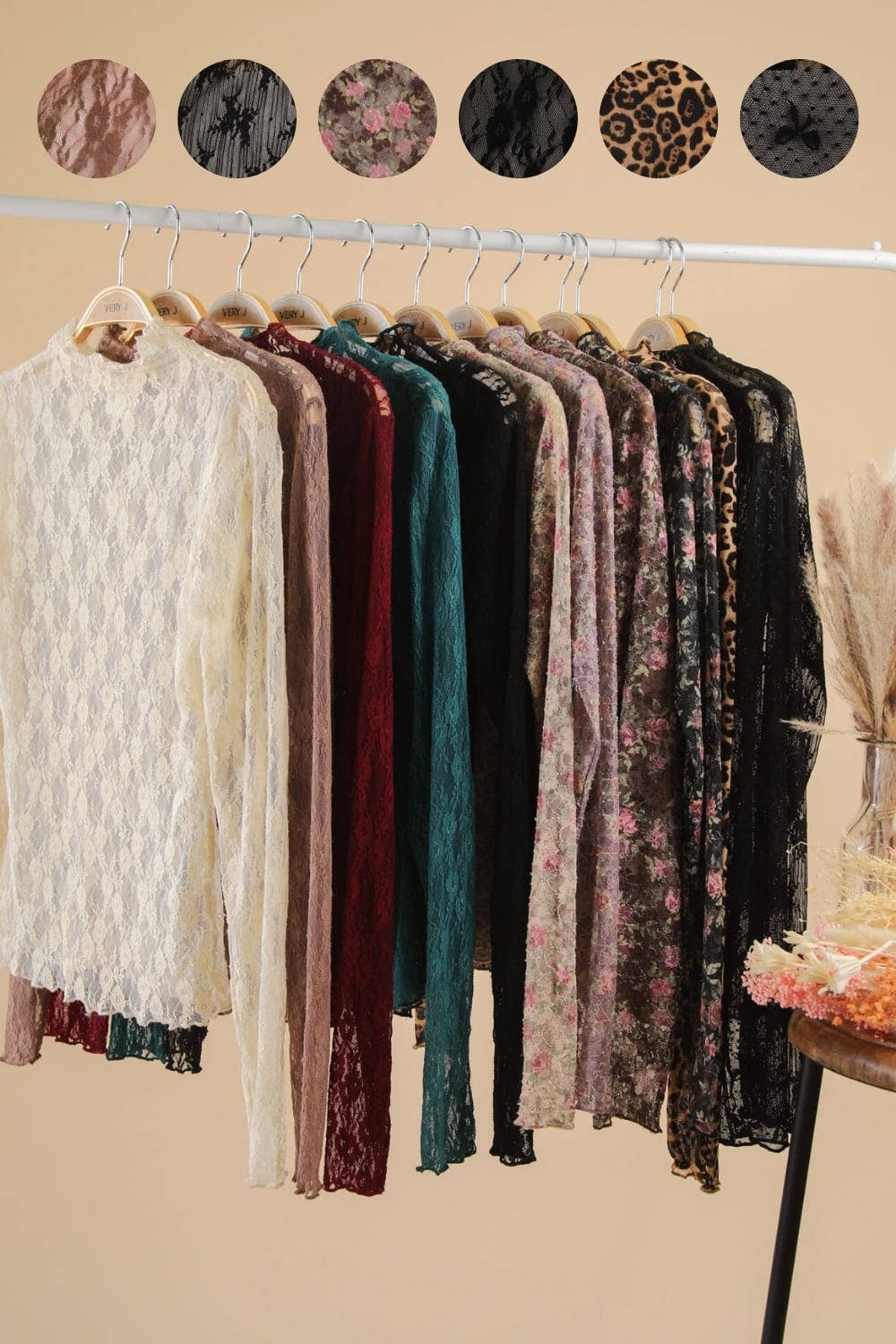 - High Neck Fitted Sheer Mesh Lace Knit Top - Solid, Floral, Bow, Stripe & Leopard Printed - Long Sleeve (Model height: 5'8", wearing a Small)